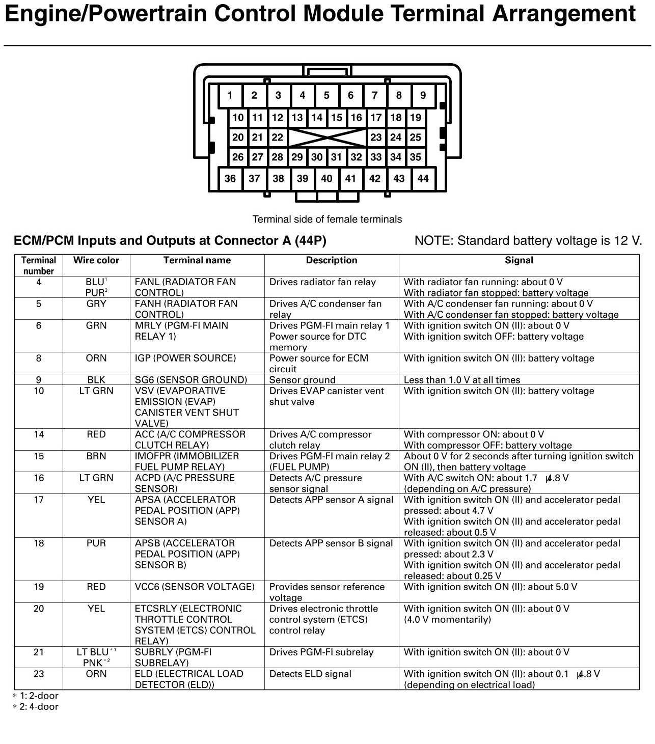 ECM/PCM Inputs And Outputs At Connector A (Si)