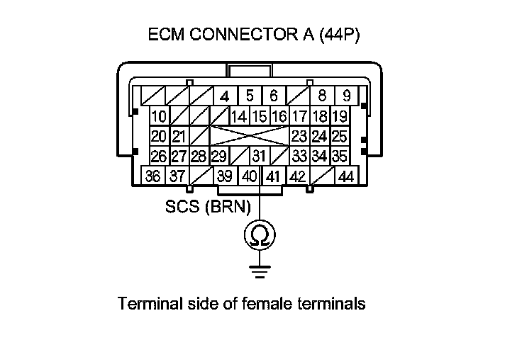 7. Check for continuity between ECM connector terminal A31 and body ground.