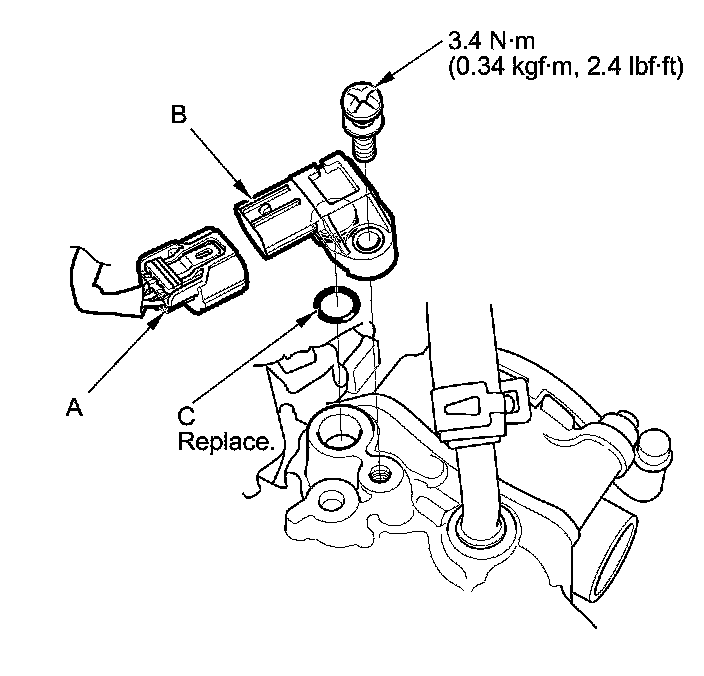 Install the parts in the reverse order of removal with a new O-ring (C).