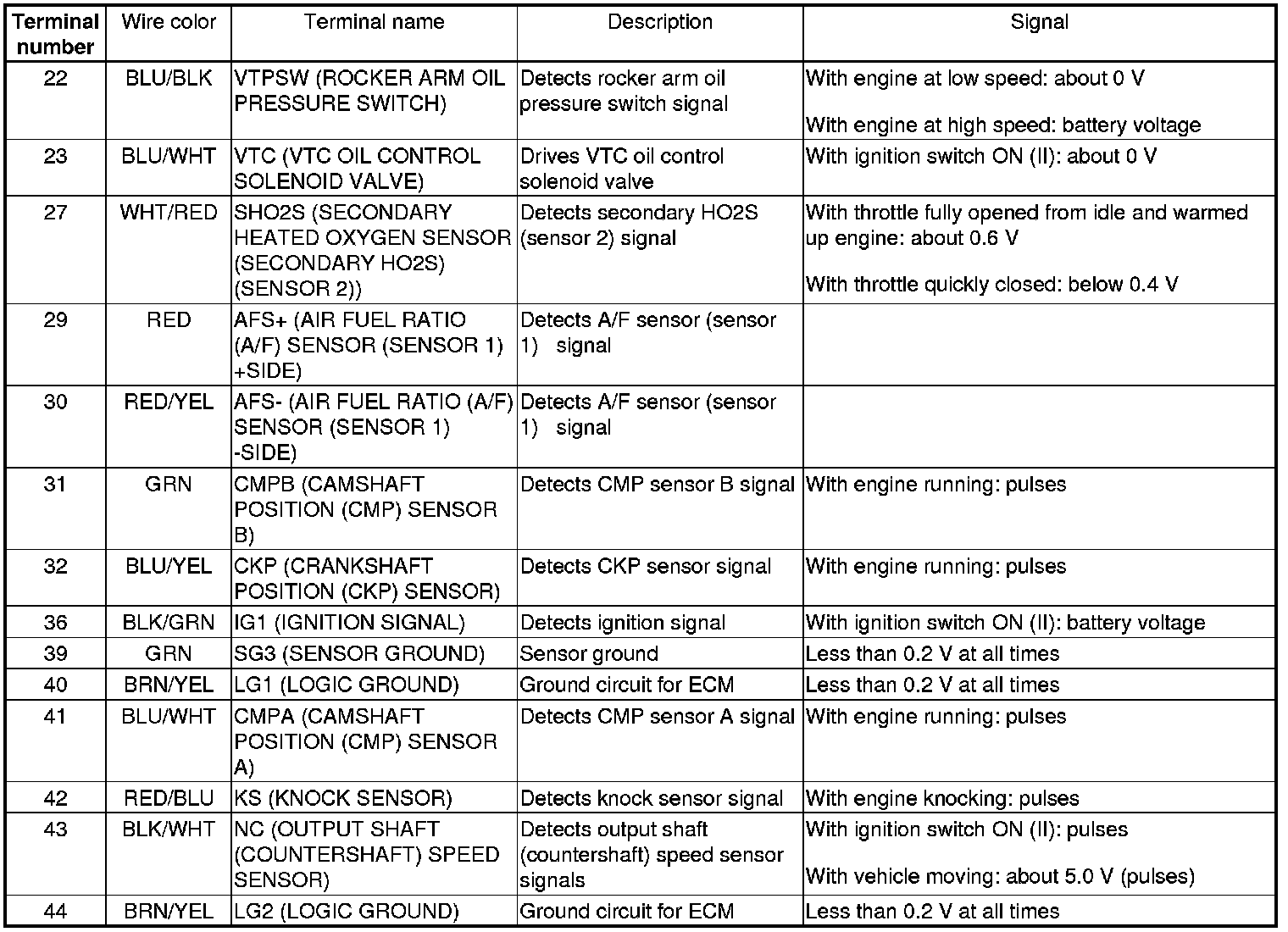 ECM Inputs and Outputs at ECM Connector B (triangle) (44P)