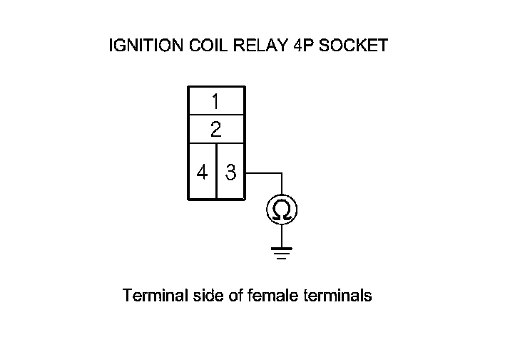 11. Check for continuity between ignition coil relay 4P socket terminal No. 3 and body ground.