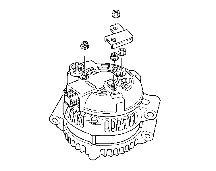 4. Remove the harness stay and the three flange nuts from the alternator.
