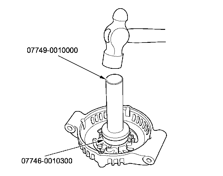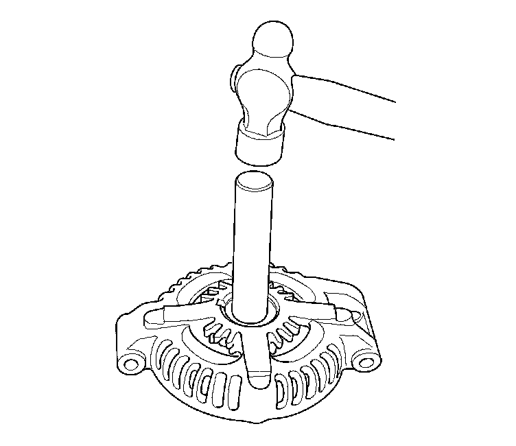 12. Install a new front bearing in the drive-end housing with a hammer, the driver handle, 15 x 135L, and the attachment 42 x 47 mm.