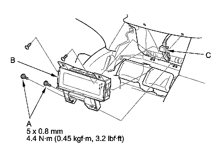 3. Disconnect the connector (C), and remove the audio-HVAC display unit.