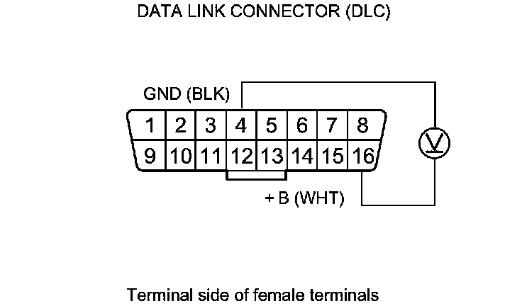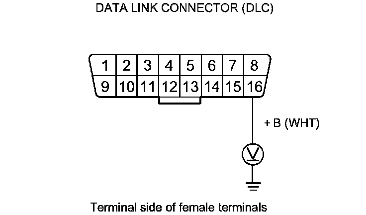 25. Measure the voltage between DLC terminal No. 16 and body ground.