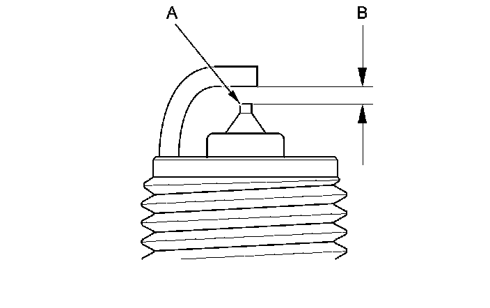 3. Replace the plug at the specified interval, or if the center electrode (A) is rounded, or if the spark plug gap (B) is out of specification, or if the spark plug electrode is dirty or contaminated. Use only the spark plugs listed.