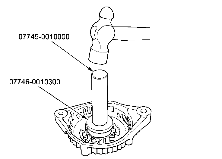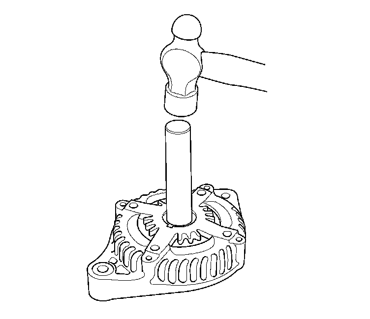 13. Install a new front bearing in the drive-end housing with a hammer, the driver handle, 15 x 135L, and the bearing driver attachment, 42 x 47 mm.