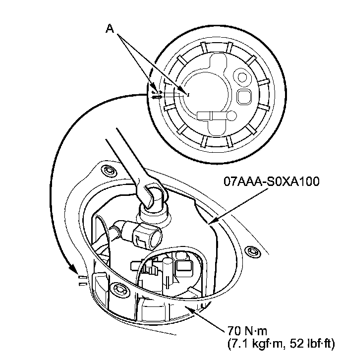 2. Transfer the base gasket (A) from the fuel tank unit to the fuel tank.