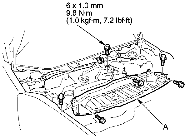 2. Remove the bolts, then remove the under-cowl panel (A).