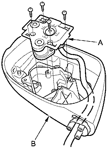 6. Remove the four screws, and separate the power mirror actuator (A) from the housing (B).