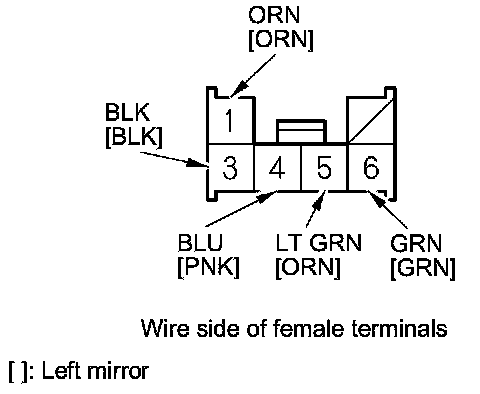 2. Record the power mirror connector terminals location and the wire harness colors.