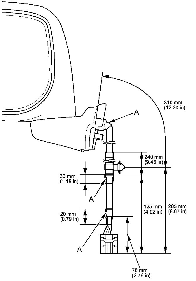 3. Disassemble the power mirror connector (A), and remove the terminals (B) from the connector.