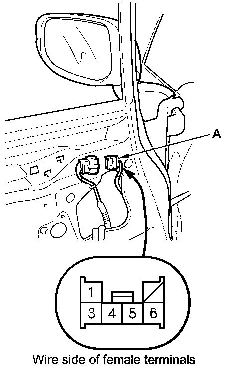 6. If the resistance is not as specified, check for an open in the wire between the connector and the mirror holder. If the wire is OK, replace the mirror holder.