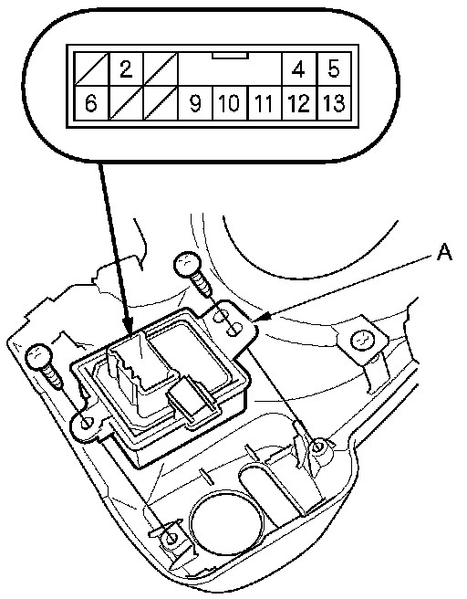 2. Disconnect the 13P connector from the power mirror switch (A).