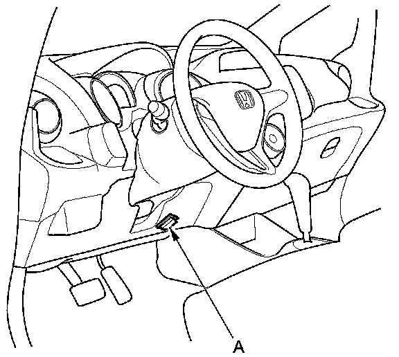 2. With the ignition switch in LOCK (0), connect the HDS to the data link connector (DLC) (A) under the driver's side of the dashboard.