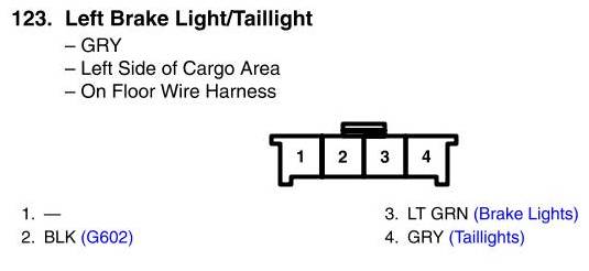 View 123 - Left Brake Light/Taillight Connector View