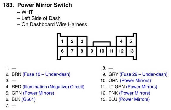View 183 - Power Mirror Switch Connector View