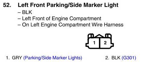 View 52 - Left Front Parking/Side Marker Light Connector View