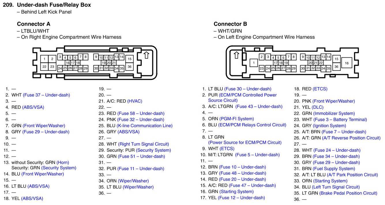 Under-Dash Fuse/Relay Box Connector View