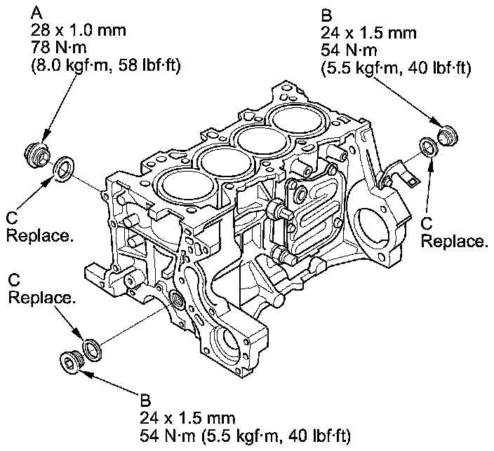 Engine Block Drain Bolt/Sealing Bolt Installation