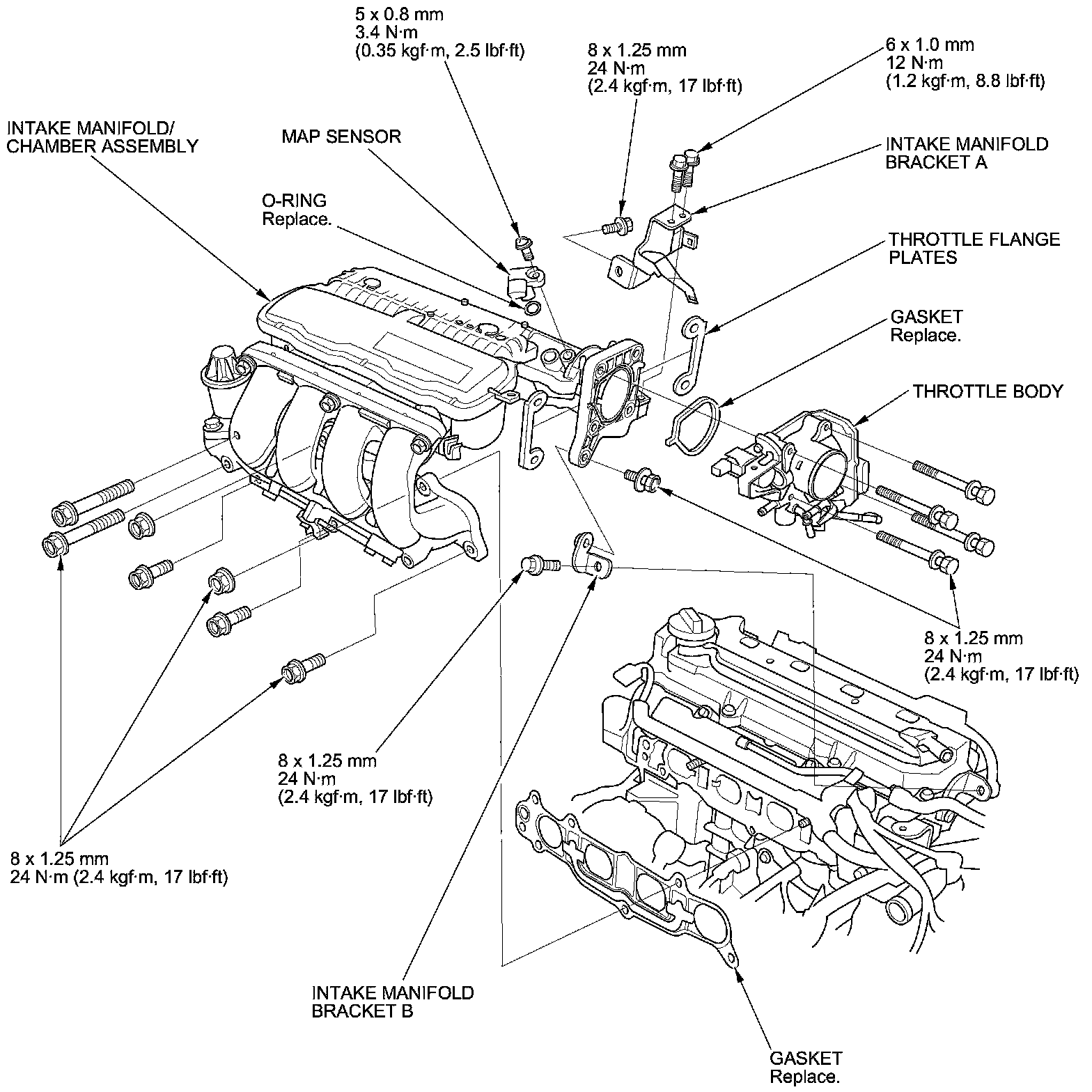 4. Tighten the intake manifold bracket mounting bolts in the numbered sequence shown.