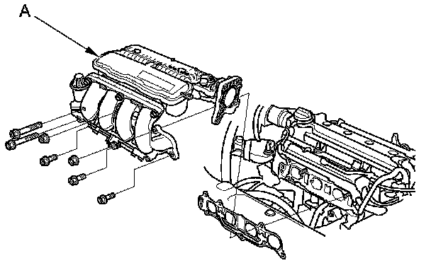 11. Remove the intake manifold/chamber assembly (A) from the cylinder head.