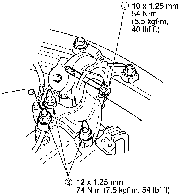 - Reinstall the mounting bolts and support nuts in the sequence given in the following steps. Failure to follow this sequence may cause excessive noise and vibration, and reduce engine mount life.