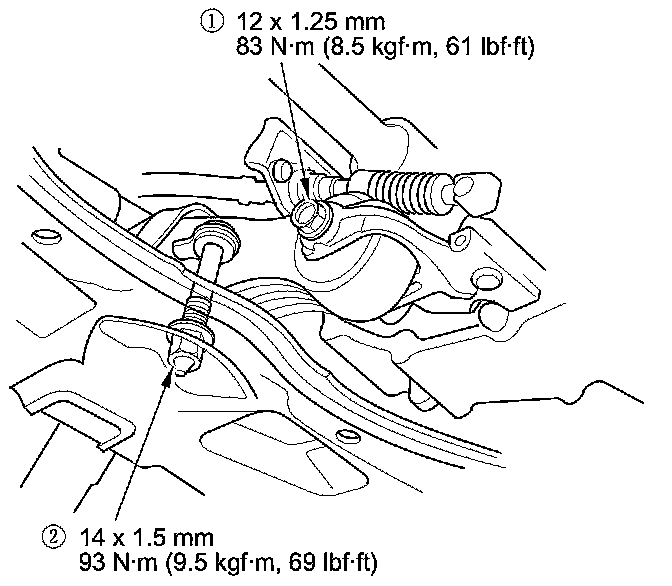 24. Tighten the torque rod mounting bolt and nut in the numbered sequence shown.