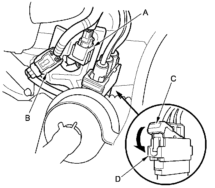 26. Pull down the lever (C) of the EPS motor 3P connector (D), then confirm the connector is fully seated.