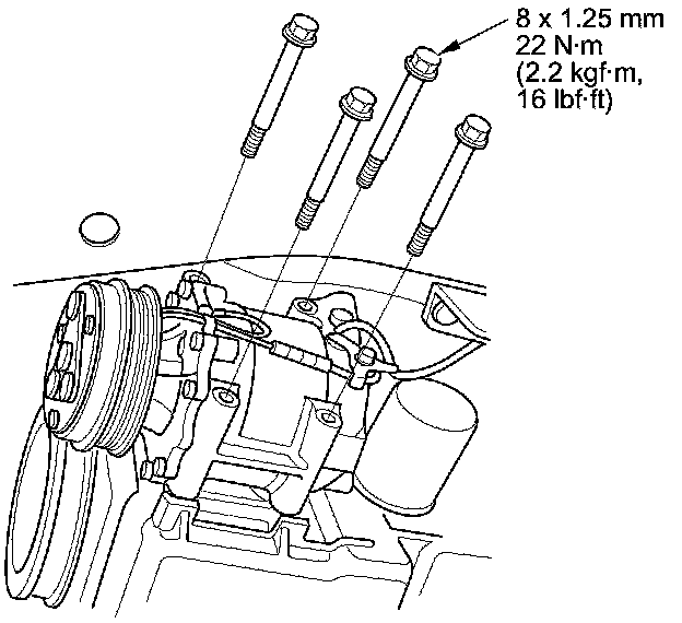33. With A/C: Install the A/C compressor.
