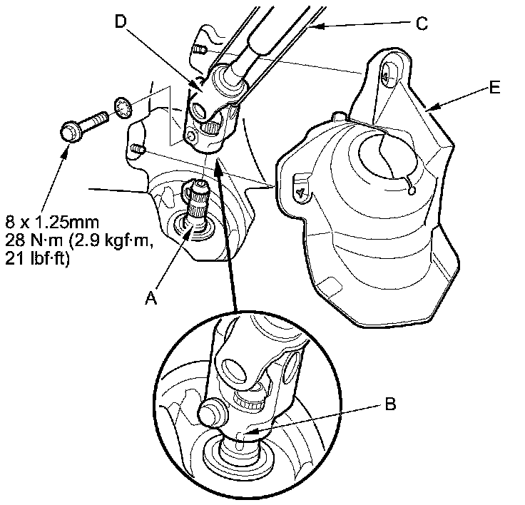 52. Install the steering joint cover (E).