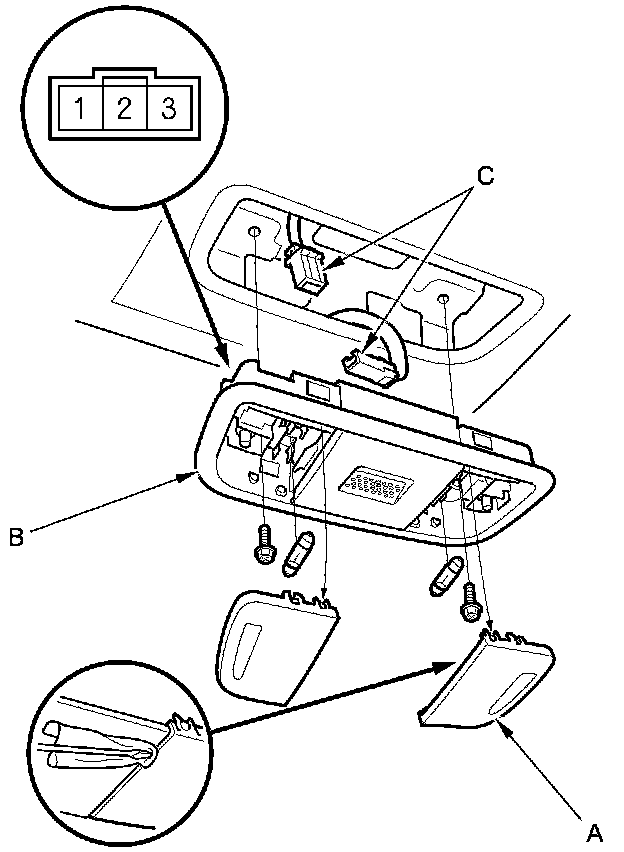 4. Disconnect the connectors (C) from the individual map light.