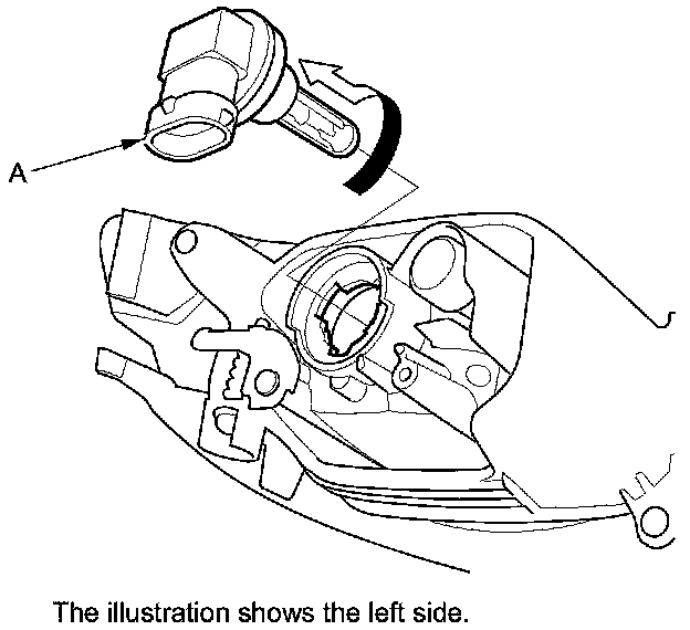 2. Turn the bulb socket (A) 45 ° counterclockwise to remove it from the housing.