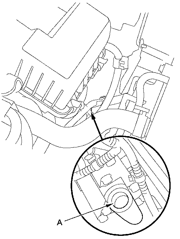 6. Remove the dipstick, and refill the transmission with the recommended fluid into the dipstick guide opening (A). Always use Honda ATF DW-1 Automatic Transmission Fluid (ATF). Using a non-Honda ATF can affect shift quality.