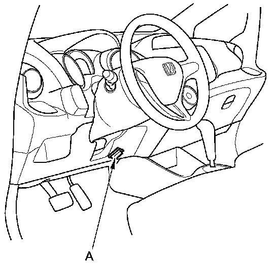 1. With the ignition switch in LOCK (0), connect the HDS to the data link connector (DLC) (A) located under the driver's side of the dashboard.