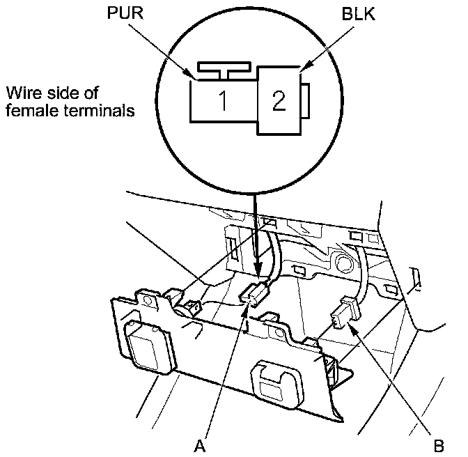 2. Disconnect the 2P connector (A) and the AUX connector (B) (if equipped).