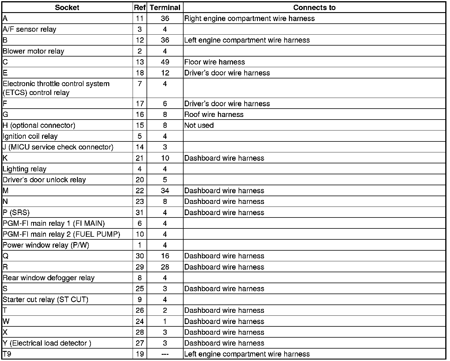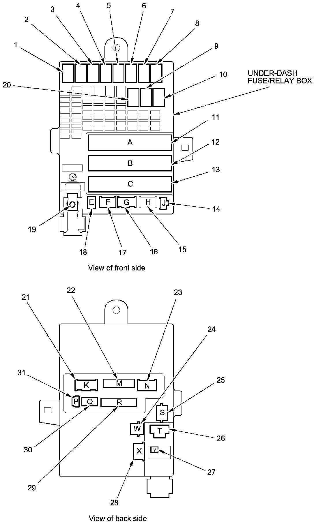 Fuse/Relay Box Connector Locations (Under-Dash Fuse/Relay Box)