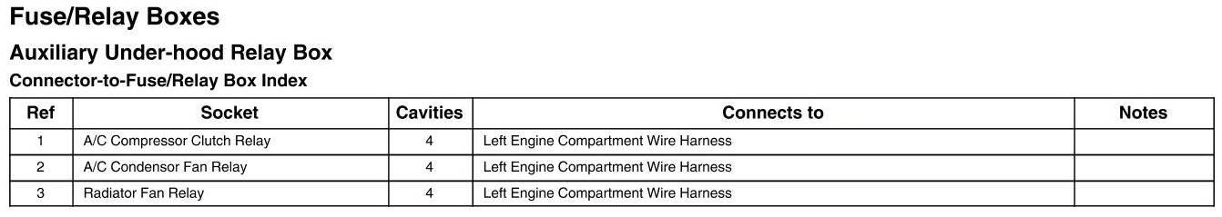 Auxiliary Under-Hood Relay Box - Connector-To-Fuse/Relay Box Index