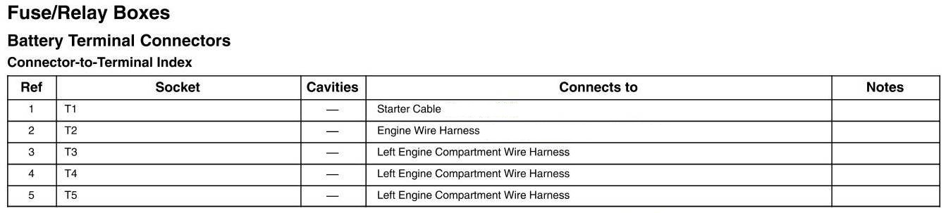 Battery Terminal Connectors - Connector-to-Terminal Index