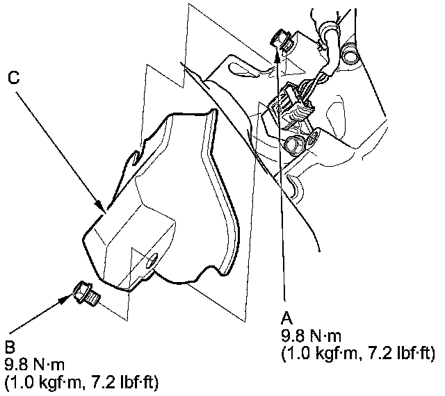 5. Install the parts in the reverse order of removal with a new O-ring (C).