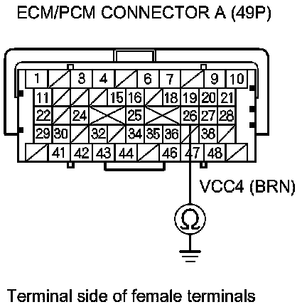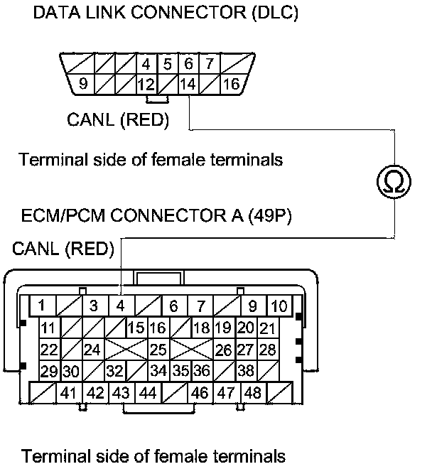 35. Check for continuity between ECM/PCM connector terminal A4 and DLC terminal No. 14.