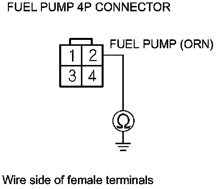 55. Check for continuity between fuel pump 4P connector terminal No. 2 and body ground.