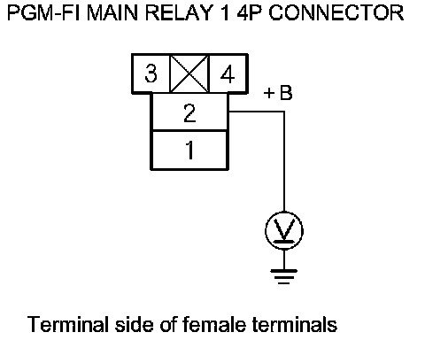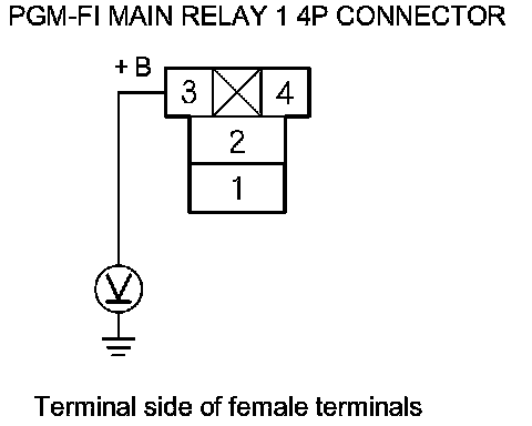 68. Measure the voltage between PGM-FI main relay 1 4P connector terminal No. 2 and body ground.