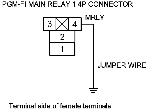 69. Connect PGM-FI main relay 1 4P connector terminal No. 1 to body ground with a jumper wire.