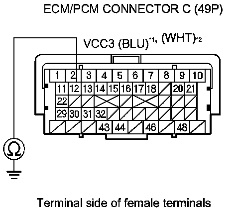 73. Check for continuity between body ground and ECM/PCM connector terminals B1, B10, C2, C44, and C48 individually.