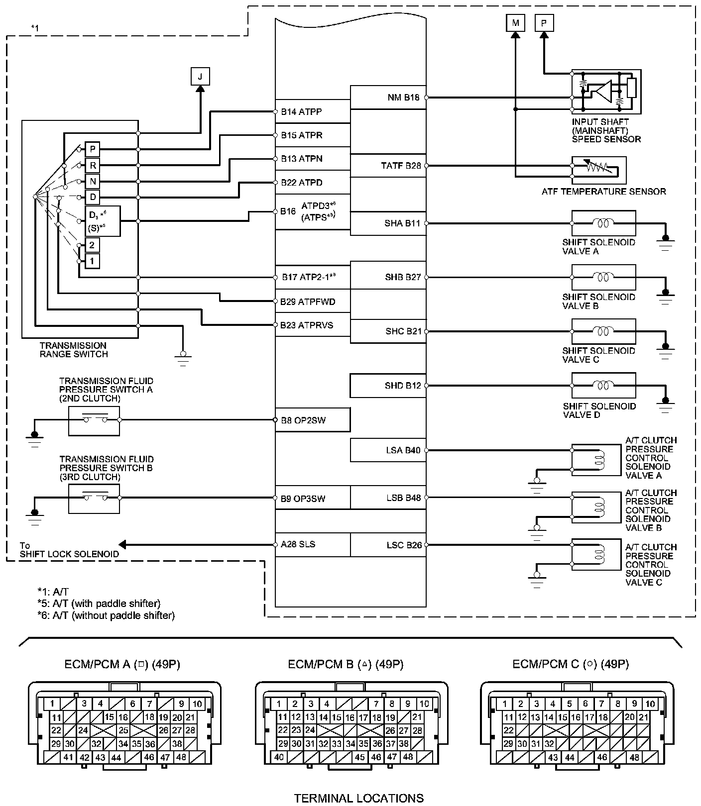 ECM/PCM Inputs and Outputs at ECM/PCM Connector B (triangle) (49P)