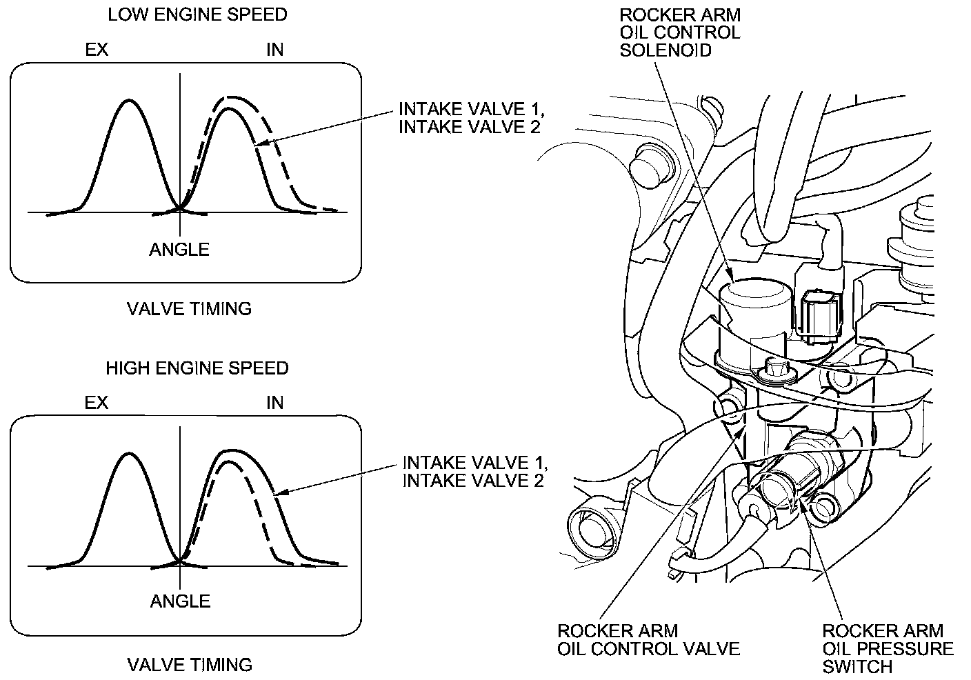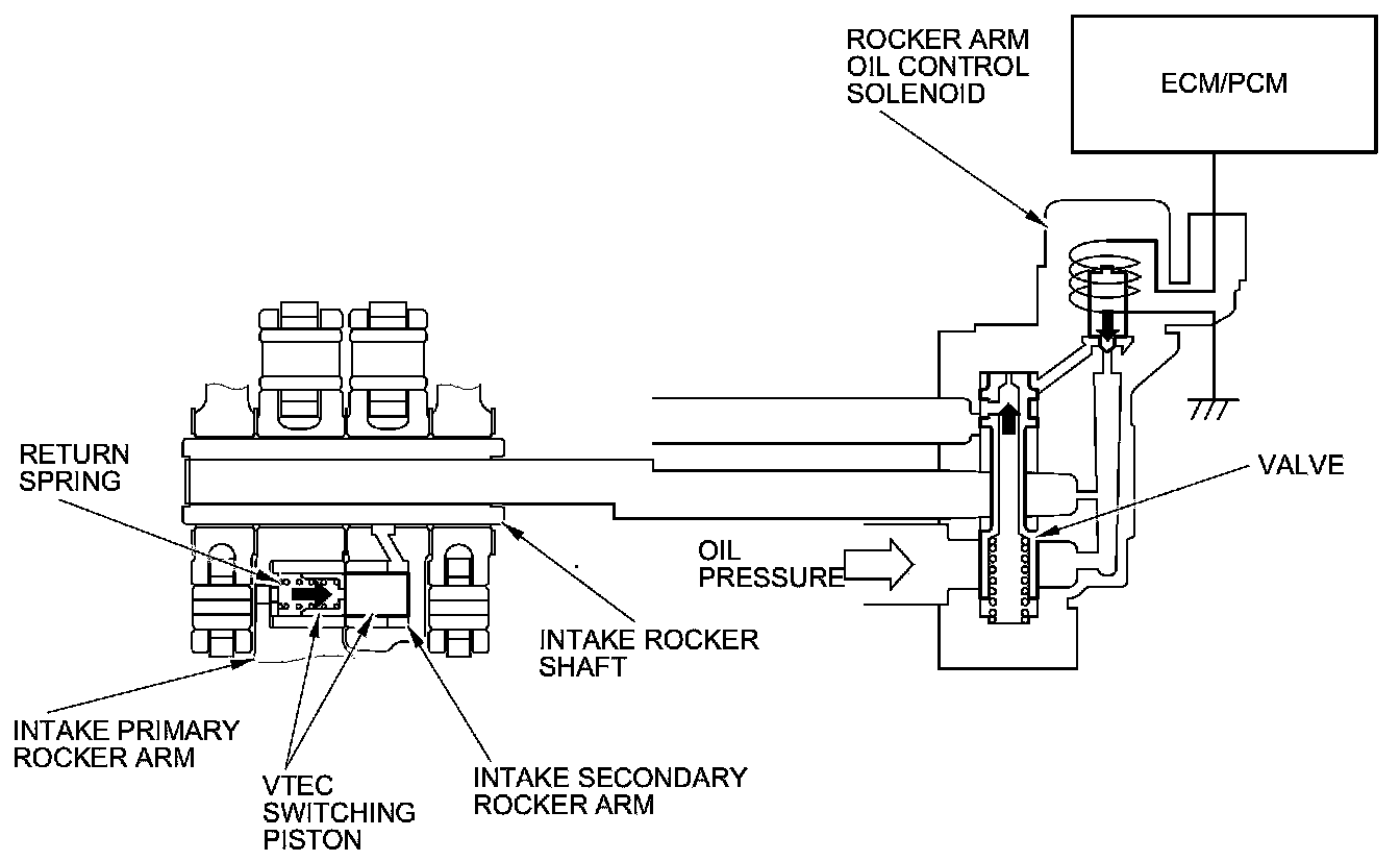 - The rocker arm oil control solenoid switches both intake rocker arms of the VTEC system on and off; the solenoid is controlled by the ECM/PCM.