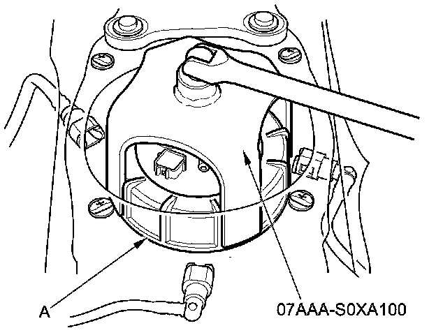 4. Using the special tool, tighten a new locknut (A) with a new locknut plate (B) to the specified torque.