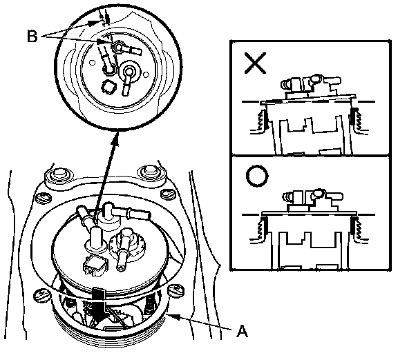 NOTE: To avoid a fuel leak, check the base gasket, visually or by hand, to make sure it is not pinched.
