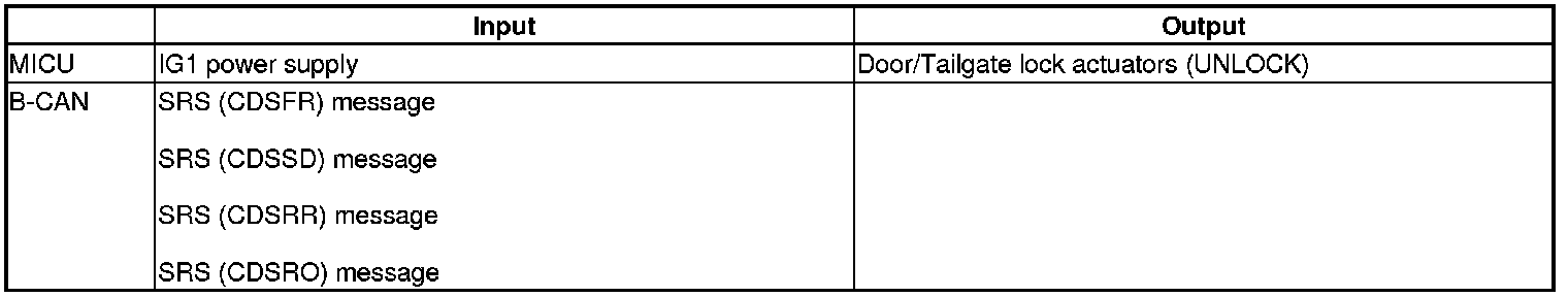The MICU control of the door lock actuators is based on the IG1 and SRS (CDS) inputs.